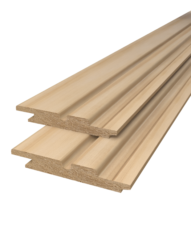 Dit profiel wordt verdekt (blind) geschroefd. Dit profiel is zeer populair voor gevel- en wandbekleding waarbij de planken horizontaal worden gemonteerd.. De groef is in ongeveer 1/3 van de plankbreedte gefreesd waardoor je twee ongelijke banen verkrijgt. Dit profiel kan worden gecombineerd met de enkele rhombus- en normale dubbele rhombus om een eigentijdse en moderne gevel te creëren.