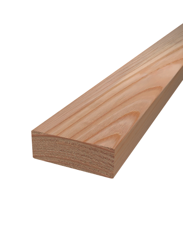 Bij de geschaafde balken zijn de langskanten zijn licht afgerond om splintervorming op de scherpe hoeken te voorkomen.