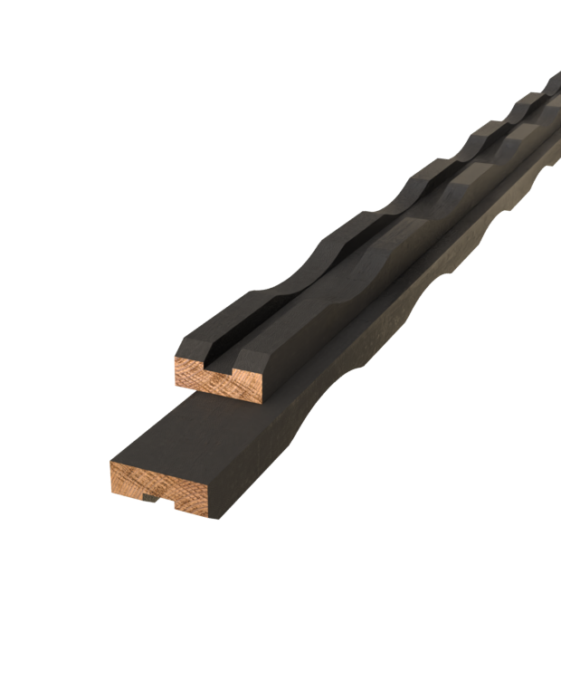 Zwart gespoten Vuren Ventilatielat (P152) S/F KD18-20% Zwart (1KA + 1V4 RAL9005) 21x45mm