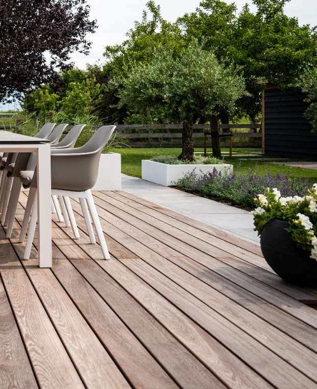- Zeer geschikt als buitenparket, gevel parket en voor vlonders