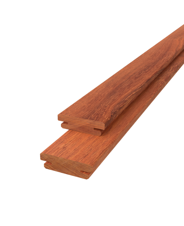 Deze hoogwaardige Padouk plank is perfect voor buitenvloeren en gevelbekleding. Met de onzichtbare bevestiging door middel van speciale roestvrijstalen clips creëer je een strak en modern uiterlijk, ideaal voor een stijlvolle en duurzame afwerking van je buitenproject.
