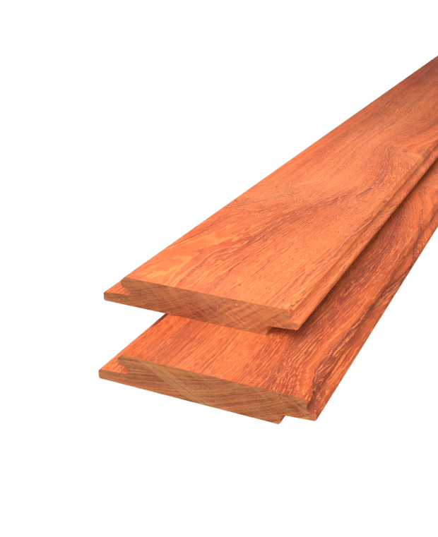 Padouk komt uit Afrika en het is een zeer duurzame en uitzonderlijk stabiele houtsoort. Het kent weinig werking en is relatief makkelijk te bewerken. Deze houtsoort heeft een dieprode kleur en zal uiteindelijk een prachtige zilvergrijs verweren.