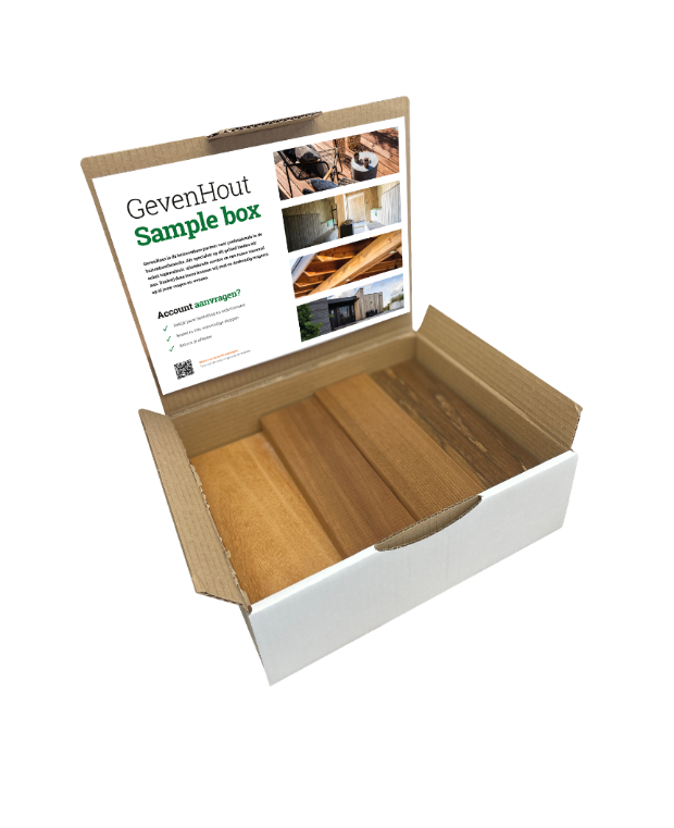 Wil je zeker zijn van de perfecte houtkeuze? Vraag een sample aan bij Gevenhout en ontdek de kwaliteit zelf! Een sample geeft je een veel beter beeld van de kwaliteit en uitstraling van het hout. Je kunt het materiaal voelen, de structuur bekijken en zien hoe het bij je project past.