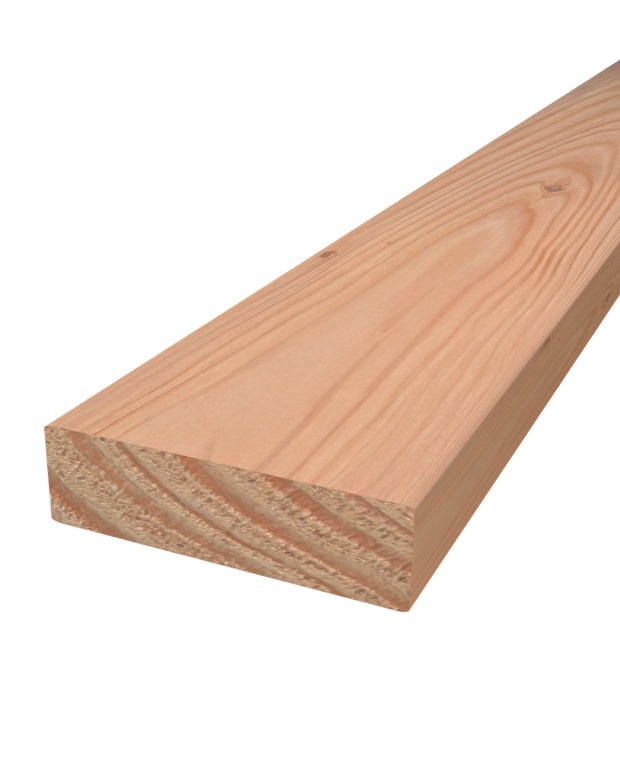 Bij de geschaafde balken zijn de langskanten zijn licht afgerond om splintervorming op de scherpe hoeken te voorkomen.