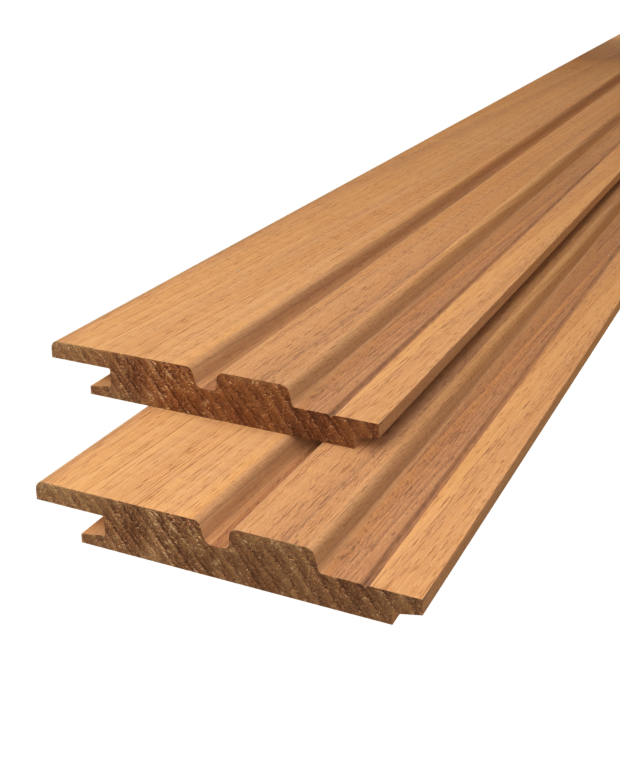 Dit profiel wordt verdekt (blind) geschroefd. Dit profiel is zeer populair voor gevel- en wandbekleding waarbij de planken horizontaal worden gemonteerd.. De groef is in ongeveer 1/3 van de plankbreedte gefreesd waardoor je twee ongelijke banen verkrijgt. Dit profiel kan worden gecombineerd met de enkele rhombus- en normale dubbele rhombus om een eigentijdse en moderne gevel te creëren.