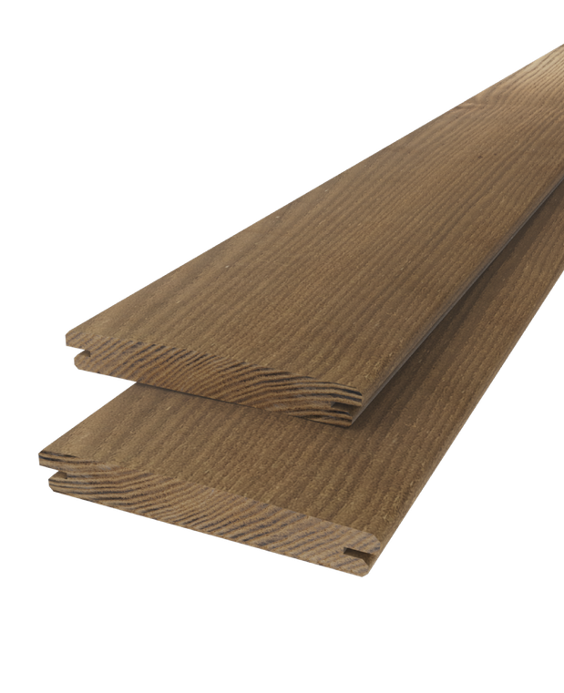 Deze hoogwaardige Thermo Essen plank is perfect voor buitenvloeren. Dankzij de afgeronde bovenkant (+/- 2mm) wordt water efficiënt afgevoerd, wat de levensduur van uw terras verlengt. Met de onzichtbare bevestiging door middel van speciale roestvrijstalen clips creëert u een strak en modern uiterlijk, ideaal voor een stijlvolle en duurzame afwerking van uw buitenproject.