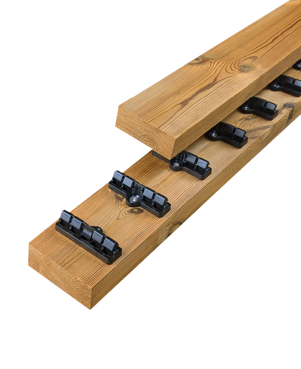 - Deze achterregel (achterlat) is geschikt voor planken van 52mm breedte voorzien van de PaCS groef. Op deze lat zitten reeds voorgemonteerde PaCS clips. Hierdoor is de PaCS plank blind te bevestigen en wordt een mooi geheel gecreëerd.