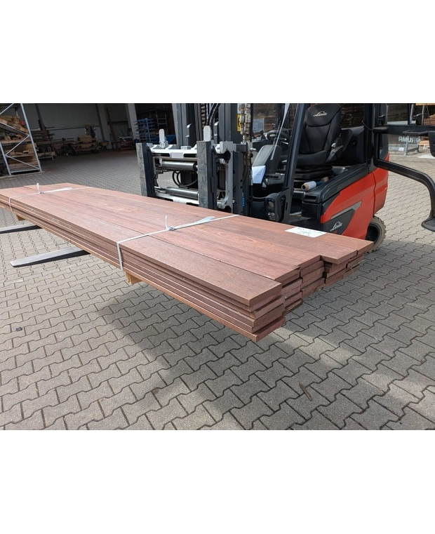 Thermo Merbau Restpost R436 - 14,3m2 PLank geschaafd, ca. 21x145mm A/B Sortering