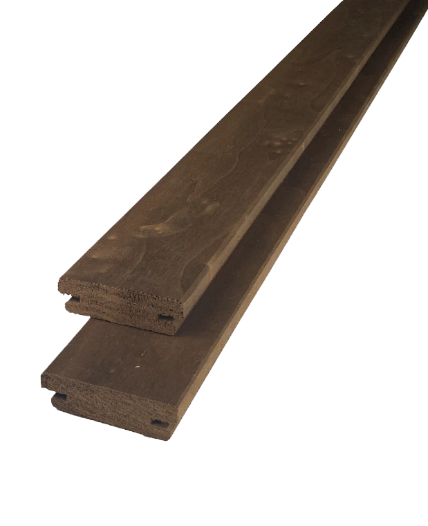 Deze hoogwaardige Thermo Populieren plank is perfect voor buitenvloeren en gevelbekleding. Met de onzichtbare bevestiging door middel van speciale roestvrijstalen clips creëer je een strak en modern uiterlijk, ideaal voor een stijlvolle en duurzame afwerking van je buitenproject.