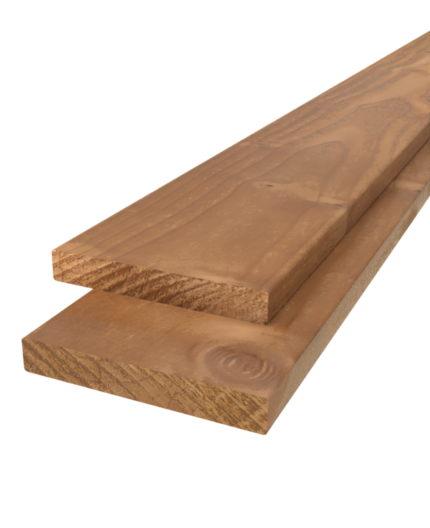 Let op: door de warmtebehandeling verliest Thermo Vuren deels zijn constructieve sterkte. Hierdoor is het iets kwetsbaarder bij transport en verwerking. Wij adviseren daarom om ca. 10% extra hout te bestellen, zodat je zeker weet dat je voldoende bruikbaar materiaal hebt voor jouw project.
